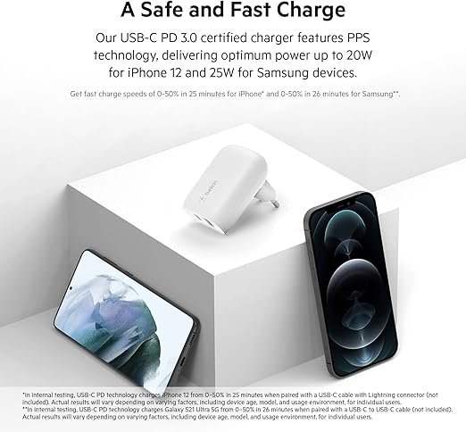 - Fast Charging Certified: The USB-C PD 3.0 certification guarantees fast charging, powering an iPhone 12 from 0-50% in just 25 minutes, and a Samsung Galaxy S21 Ultra 5G from 0-50% in 26 minutes.