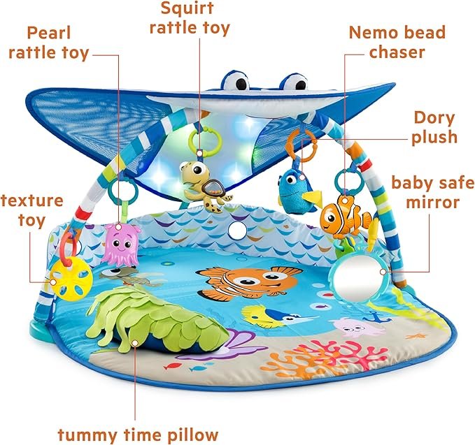 Why Choose Bright Starts? Bright Starts combines fun with learning to create high-quality, engaging toys that support your baby’s growth and development. The Finding Nemo Ocean Lights Baby Activity Gym is the perfect addition to your baby’s playtime, offering sensory-rich experiences and promoting fine motor skills through joyful exploration.
