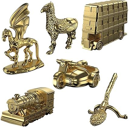 - Iconic Golden Tokens: Travel around the board using one of six unique transportation-themed golden tokens, including the Hippogriff, Knight Bus, Hogwarts Express, Hagrid’s Motorbike, Thestral, and Firebolt. Each token adds a touch of magic to your journey!