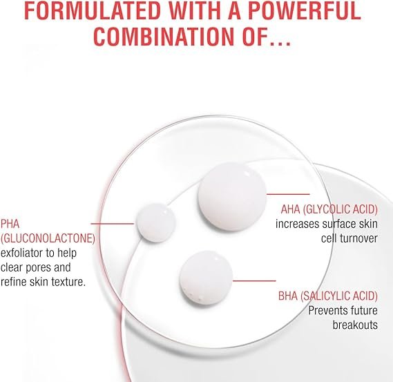 - Active Ingredients: Salicylic Acid, Glycolic Acid, Mandelic Acid