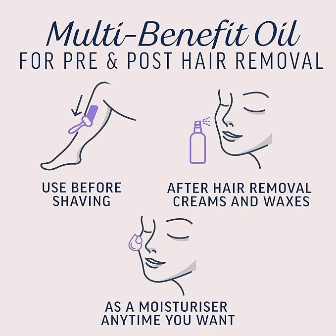 - Multi-Use Formula: Use this oil before shaving to enhance blade glide and reduce the risk of razor burns and skin irritations. It also serves as a nourishing moisturizer post-hair removal, leaving your skin feeling soft and rejuvenated.